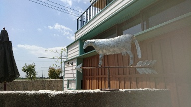 昨日プチDIY、パティオに風見鶏ではなくて風見牛を取り付けました。