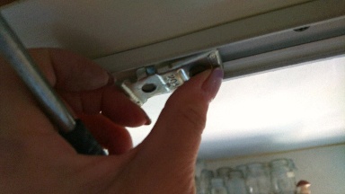 まず上部の金具をマイナスのドライバーを挟んで外します。