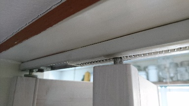 するとこのように下まですとんと降りるのでドアを開けた際、寝室より一段下がってるこちらの床までフランス落としが届くので、この位置に穴をあけます。