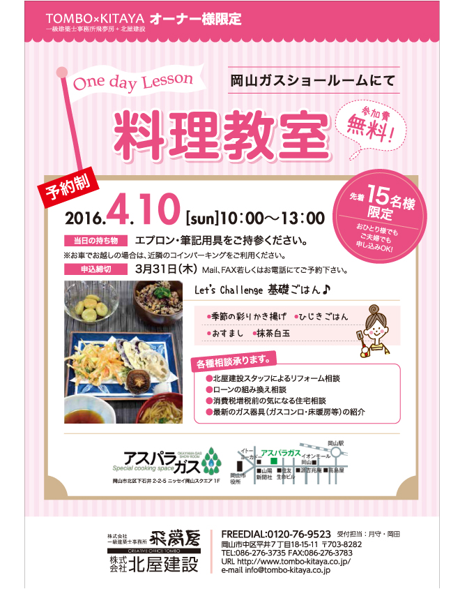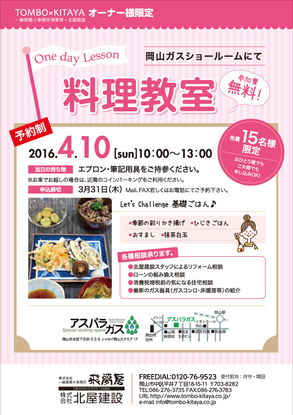飛夢房+北屋建設オーナー様限定【料理教室】を開催します