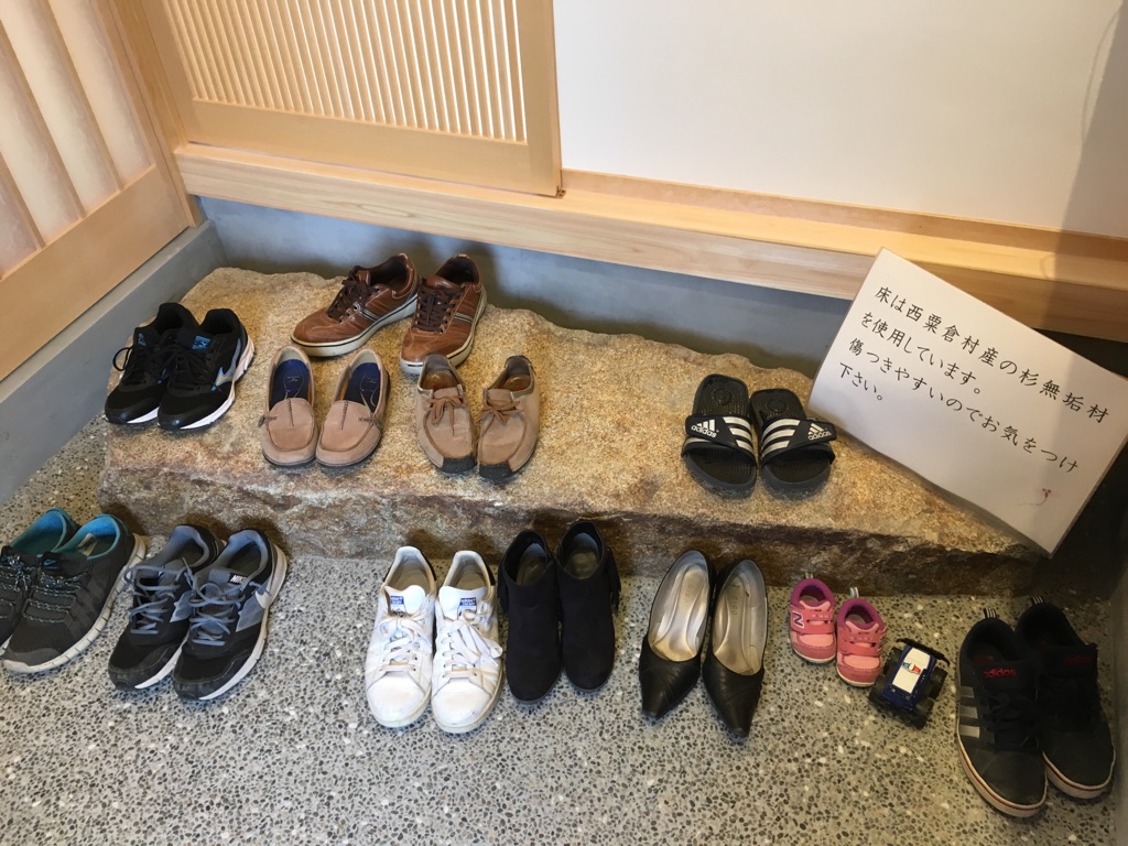 玄関に広々とした土間を設け、お施主様が石屋で選ばれた沓脱石を置きました。