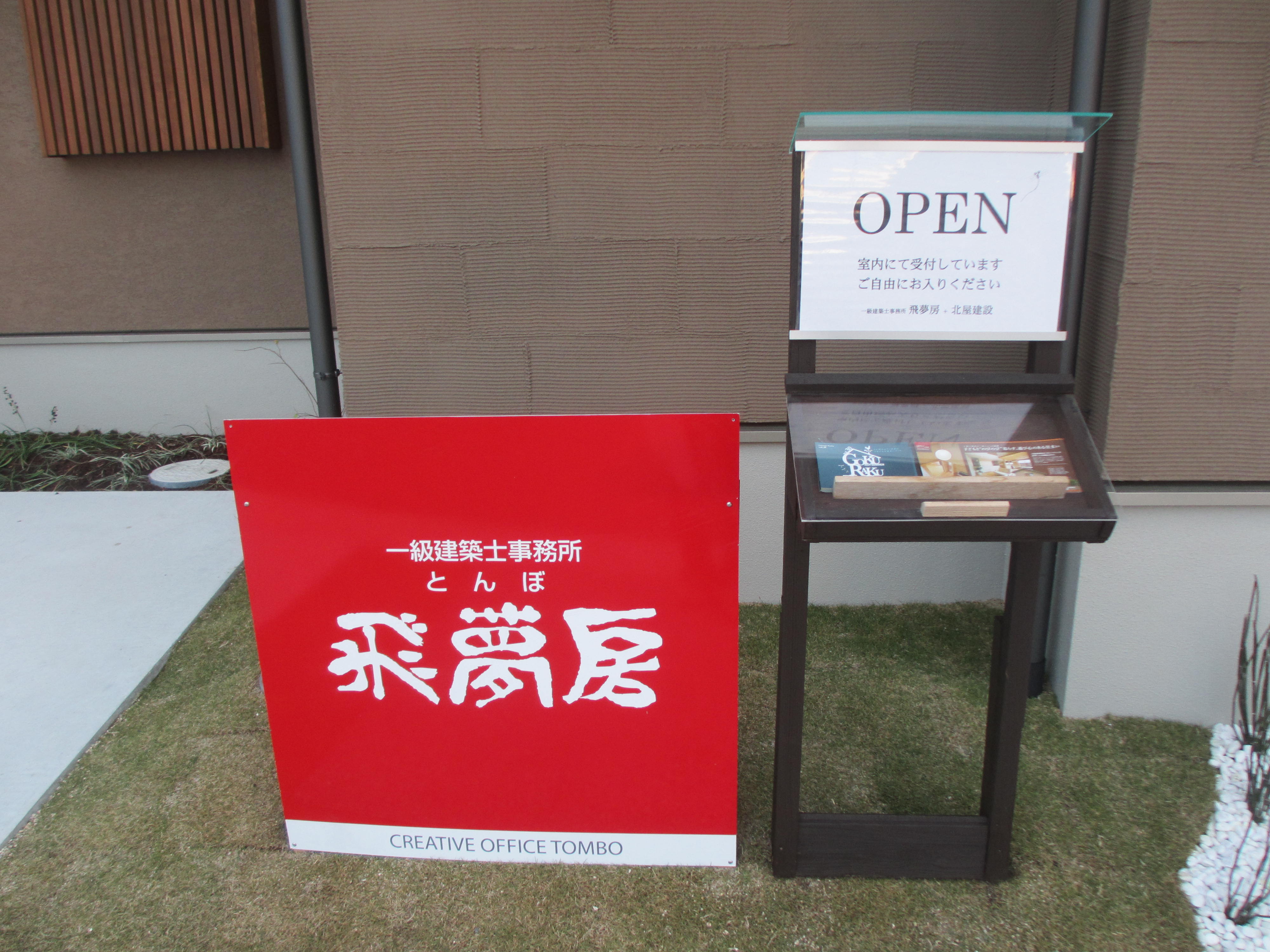 本日、モデルハウスに看板を設置しました。